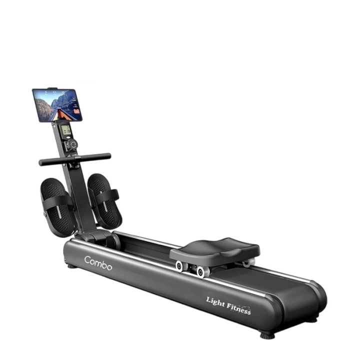 Rameur Combo Réglable LIGHT FITNESS " Écran LCD: Temps / Vitesse / Distance " résistance : 16 niveaux " Doté d'un mécanisme magnétique silencieux " Roue d'inertie : 2 kg " Connectivité bluetooth " 2 roulettes de déplacement " Pliable " Poids Maximum De L'utilisateur: 125 Kg " Garantie: 1 an